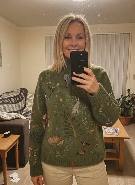 - Vävt mönster på axlarna: ger ett traditionellt vinterutseende