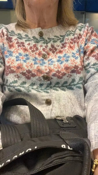 Isla-tröjan är tillverkad av en bekväm ullblandning och har ett igenkännbart runt stickat mönster som vackert sträcker sig över axlarna. Stickningens textur ger tröjan ett autentiskt utseende, medan den mjuka ullblandningen ger värme utan att kännas tung. Ärmsluten och fållen är stickade tätt och behåller sin form väl.